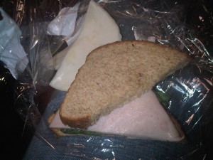 I was late making check in and customs so after I made it to the gate, I didn’t have much choice on what to eat. I grabbed a turkey sandwich and pulled off the cheese. Along with it came the sparse amount of mayo thankfully. Can’t wait to get something better on layover!