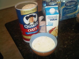 I will have the recipe up by tomorrow… We each had a pancake to try them out, but what we really had was oatmeal with egg whites, banana, and honey, cooked for 3 minutes. It was so good!